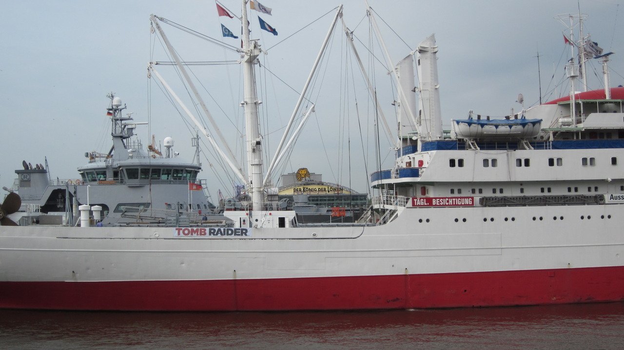 Falando em eventos impressionantes de Tomb Raider, confira a primeira parada de Karl na turnê de imprensa pós-E3 em Hamburgo, Alemanha. A equipe alemã foi com tudo e alugou um navio de expedição maciço para a ocasião. Este é o lugar mais original em que Tomb Raider foi apresentado até agora.