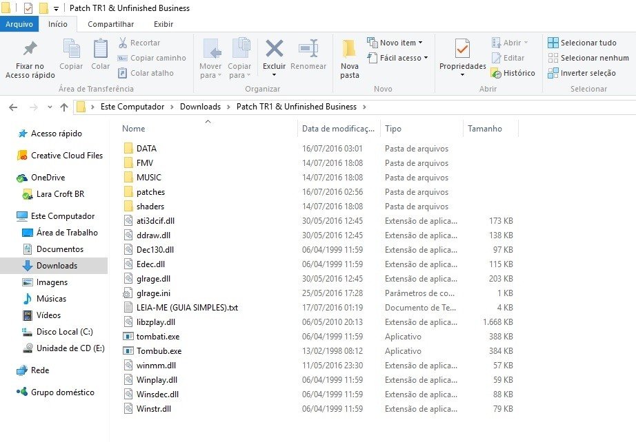 4.3 Delete todo o conteúdo dentro da pasta C:\Program Files (x86)\Steam\steamapps\common\Tomb Raider (I) mas não delete a pasta do jogo em si. Copie todo o conteúdo dentro da pasta TOMBATI para dentro da pasta Tomb Raider (I).